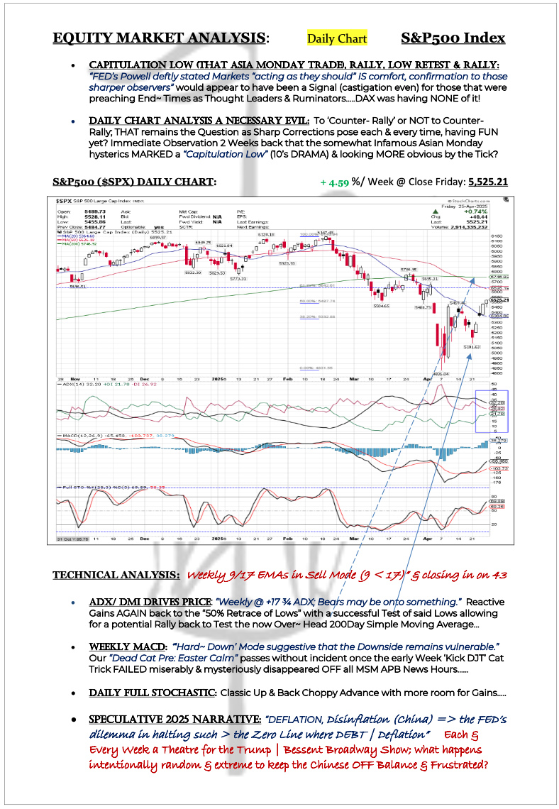 Daily Charts aplenty amid the Counter- Rally. Germany's DAX suggesting a Spoiler New High? Trump's China Hand is WHAT Matters; FOCUS #1 still.