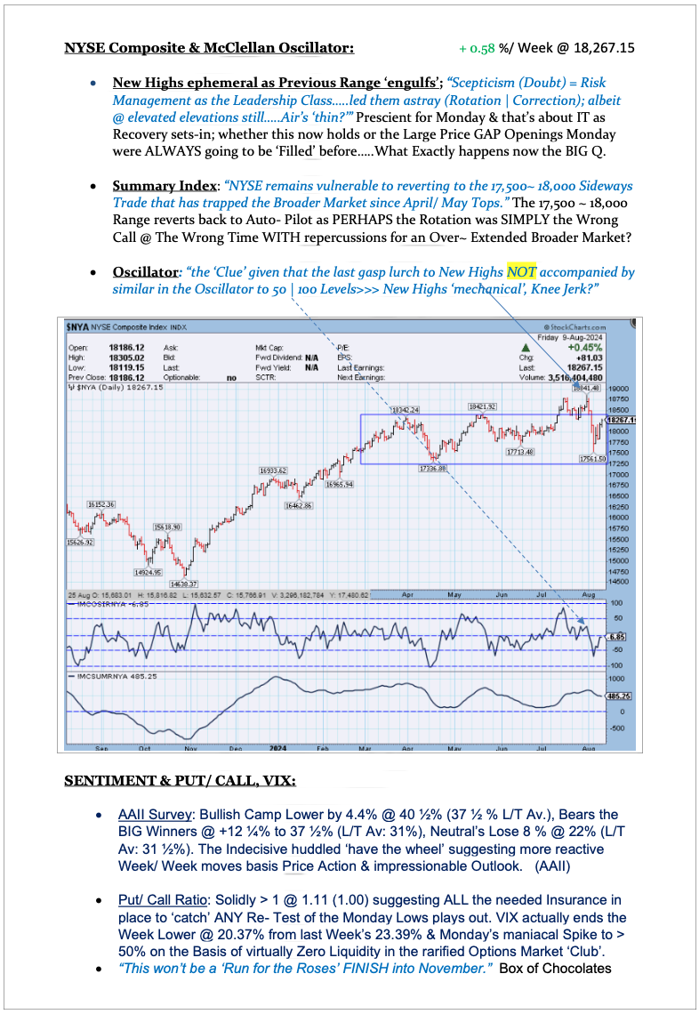This Week in the lap of the Gods as Week just passed one for the record books. Time to observe & not pre-empt would seem like an appropriate tactic.