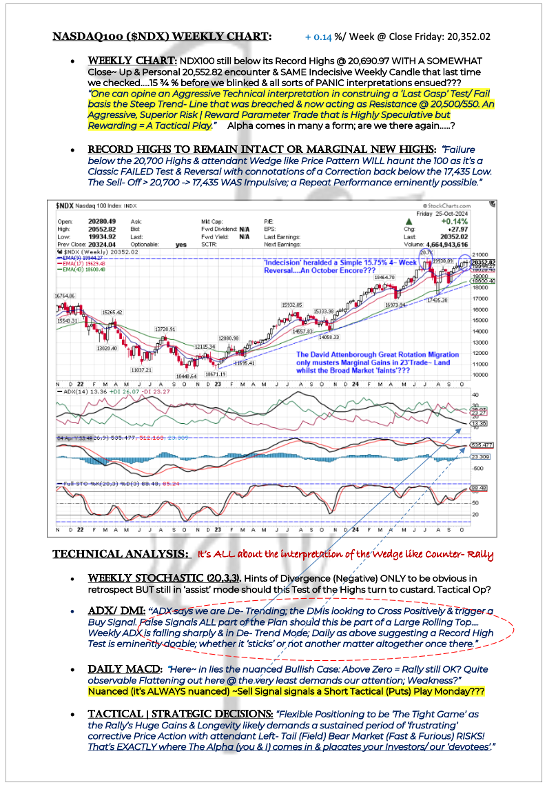 NDX100 signals Indecision; last time was in July & 15% Losses ensued. US 2yr & 10yr Notes clear of their moorings; wind's whipping up...... Safe Harbor Trades?